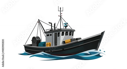 fishing, boat, ship, vessel, water, illustration, graphic, design, commercial, fishing boat, maritime, nautical, transportation, modern, equipment, graphic design, poster, advertising