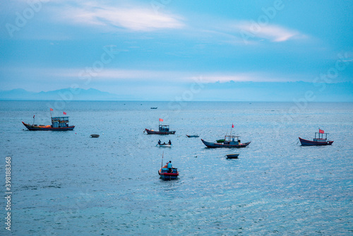 deep, deck, tour tourism, vehicle, pure, local, flag, colourful, volcanic, background, traditional, calm, transportation, lifestyle, living, coastline, editorial, travel, beach, ocean, blue, boat, water, vietnamese, vietnam, fishing, asia, island, nature, sky, beautiful, sea, peaceful, wooden, asian, green, summer, coast, natural, son, basket, landscape, peace, sand, people