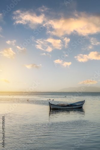Fishing boats in the Karina region near the Söke district of Aydın province Turkey are heated by sunlight at sunrise