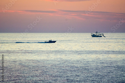 fishing boats in the sea at dawn