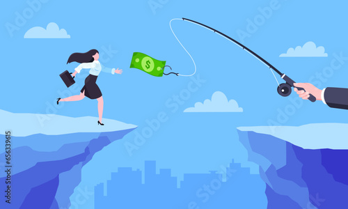 lure, money, vector, business, illegal, run, greed, woman, grab, finance, bait, loan, fishing, pyramid, pursuit, fish, fraud, chase, cash, impatient, person, concept, escape, funny, dangling, cliff, greedy, achieving, trap, hand, giant, jump, crisis, economy, financial, ravine, gap, dollar, office, success, investment, strategy, job, change, work, start, leaves, businesswoman