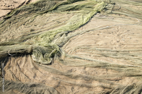 Fishing net lying on the shore