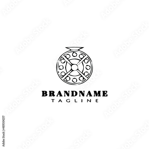 fishing reel logo cartoon design template icon black isolated vector