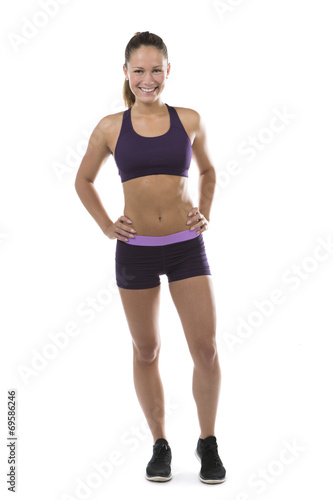 exercise, fit, fitness, girl, health, isolated, on white, sport, woman, physical exercise, young, active, lifestyle, shapely, athletic, athlete, body, wellness, muscular, activewear, sportswoman, sporty, toned, beautiful, friendly, physique, smiling, standing, curve, recreation