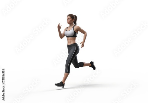 Fit Young Woman Running in Sportswear Against a White Background for Fitness and Health Themes