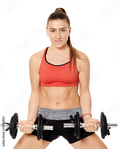Fitness girl working with weights