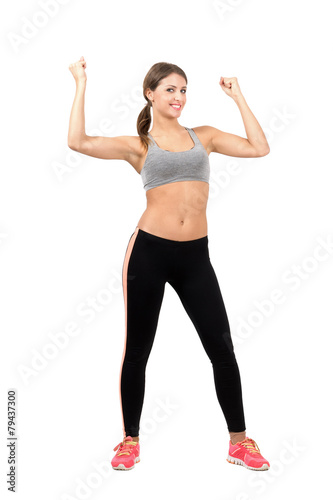 woman, fitness, gym, flexing, arm, muscle, bicep, bicep, showing, hand, isolated, model, slim, attractive, white, spring, sporty, power, fit, studio, physical exercise, active, summer, full, aerobic, top, muscle, caucasian, female, smiling, sneaker, excited, lifestyle, healthy, girl, young, care, strength, training, body, standing, athlete, vitality, ponytail, beauty, pointing, beautiful, exercise, length, confident
