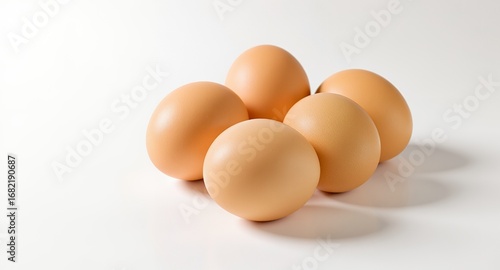Five Brown Eggs on White Background Perfect for Food, Cooking, and Easter Themes