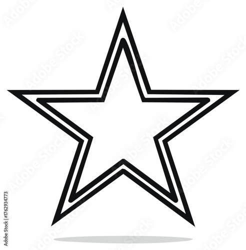 Five pointed star shape with double outline and shadow effect isolated on white