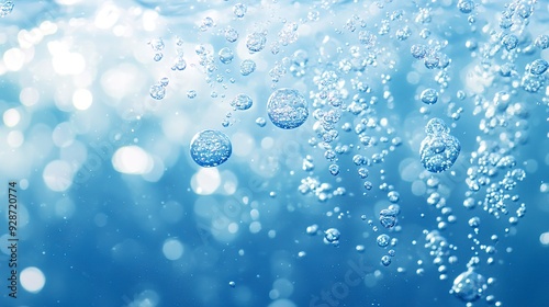 Fizzing water bubbles, carbonated drink, undersea abstract background, transparent water with fizzing moisture drops.