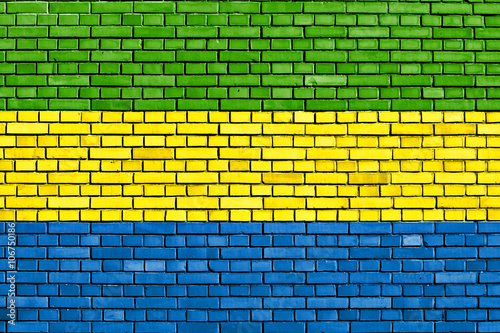 flag of Gabon painted on brick wall
