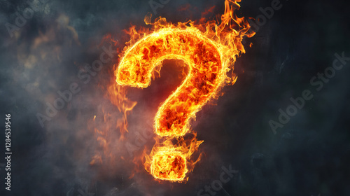 question, mark, fire, flames, burning, hot, heat, confusion, uncertainty, mystery, unknown, problem, solution, challenge, difficulty, search, answer, query, interrogation, quiz, exam, test, dilemma, puzzle, enigma, riddle, conundrum, doubt, ambiguity, dark, smoke, abstract, concept