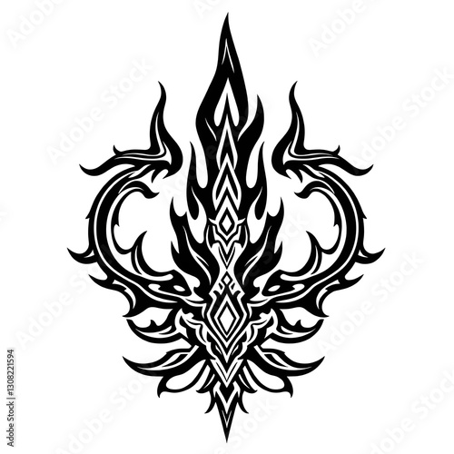 Flaming Tribal Tattoo with black ink design