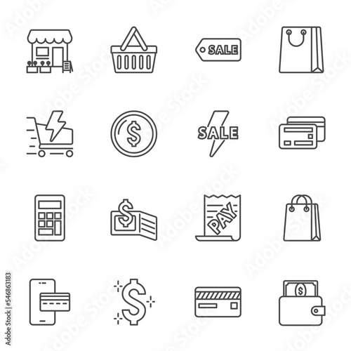 Flash Sale Special Offer icon set, Super market and shopping mall, Vector thin line icon