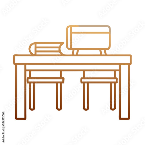 classroom, desk, icon, flat, golden brown, education, school, study, learning, academic, furniture, minimalistic, graphic, vector, design, simple, isolated, student, teaching, workspace, cognition, digital, modern, clean, lecture, writing desk, editable, clip art, concept, e-learning, school supplies, organisation