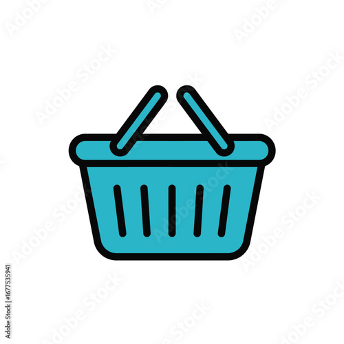 basket, shopping, cart, market, store, shop, purchase, retail, commerce, e-business, online, buy, sale, consumer, grocery, empty, container, carry, hold, item, product, good, icon, symbol, graphic, vector, illustration, flat, design, simple, minimalist, outline, line, filled, blue, teal, water, black, colours, digital, modern, clean, web, app, business, finance, transaction
