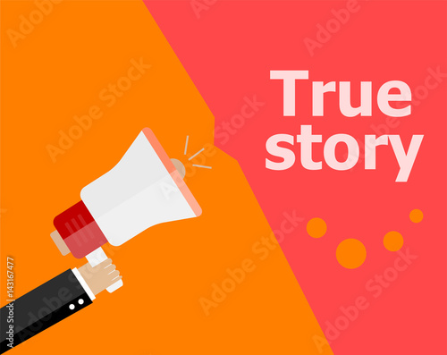 flat design business concept. True Story. Digital marketing business man holding megaphone for website and promotion banners.