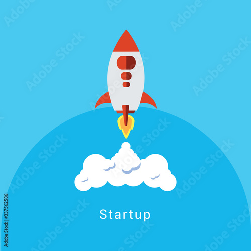 Flat design business startup launch concept, rocket icon