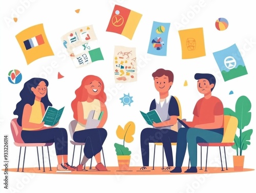 Flat Design Depicting a Language Immersion Camp Setting Focused on Education Communication and Cultural