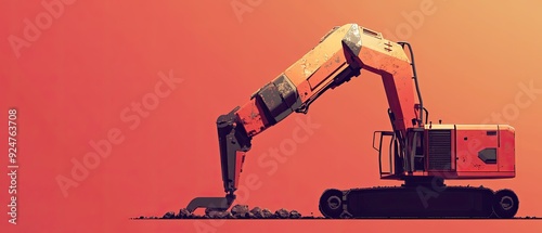 Flat design jackhammer minimalist approach vibrant colors sharp edges industrial scene digital rendering