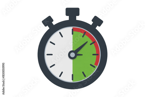 Flat design stopwatch icon showing time progress with green completed section and red warning arc, representing deadlines or urgency. background removed