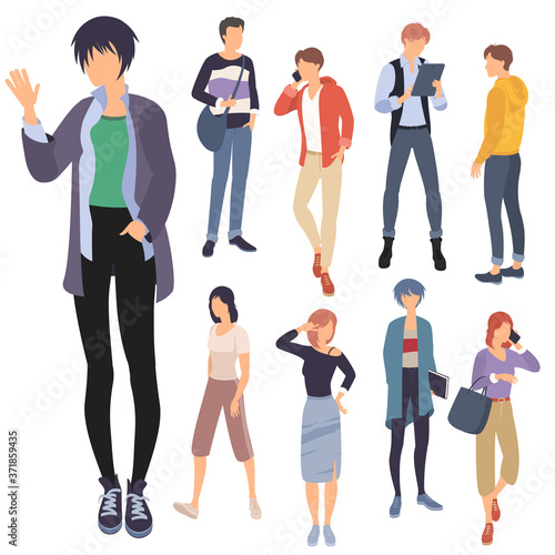 Flat design vector set of people characters are acting and communicaing. Trendy modern style vector illustration in flat cartoon style.
