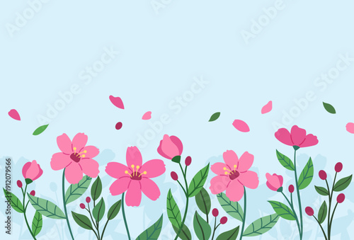 Flat floral landscape vector background