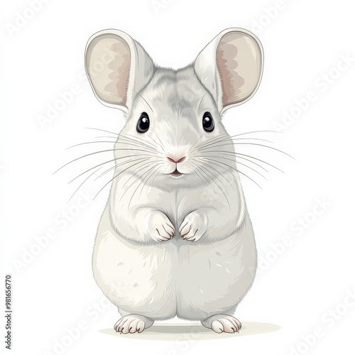 flat, illustration, chinchilla, standing, its, paw, forward, rendered, light, grey, tone, isolated, white