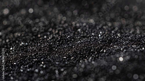 Flat image of black sand viewed from above. Sand texture.