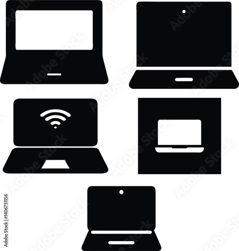 flat laptop illustrations, offering different designs for web, mobile, and tech projects on a white backdrop.