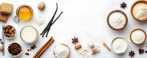 cinnamon, food, culinary, kitchen, white background, pie, almond, milk, homemade, honey, topview, star anise, receipe, epicure, bake, flavorful, nutmeg, sugar, cook, pastry, baking powder, food photography, tasty, copy space, bread, ingredient, dessert, vanilla, cookie, flour, baking, delicious, cake