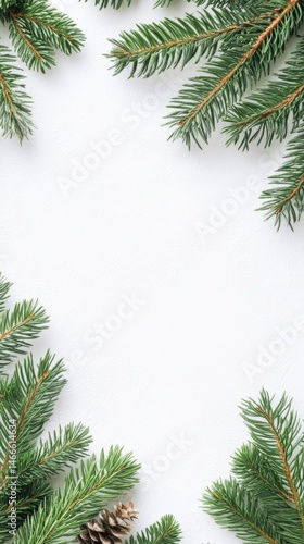 Flat Lay Photograph with Minimal Pine Leaves Border on White Background