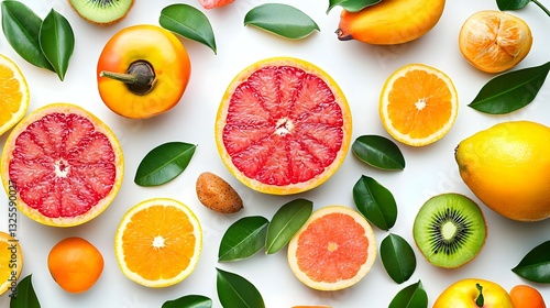 flat, lay, exotic, fruit, white, background, food, isolated, white background, healthy, fresh, organic, nourishment, environment, working, dining, portion, protein, cook, season, person, up high, garnished, garnish, studio shot, beverage, photo, breakfast, fruit, orange, grapefruit, citrous, lemon, collection, diet, red, slice, ripe, yellow, set, green, kiwi, juicy, half, apple, cut, leaf, vitamin