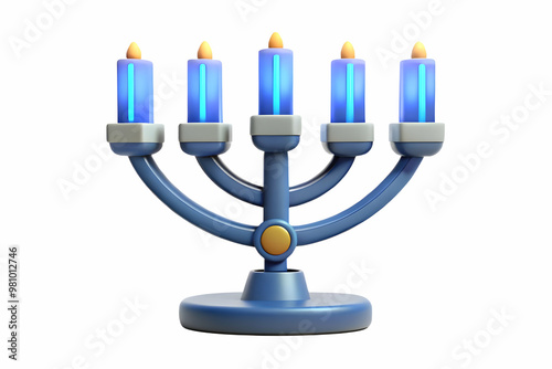 Flat Macro Illustration of Futuristic Hanukkah Candle with Glowing LED Wick in Bright Neon Colors - Modern Holiday Symbol Concept