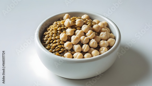 Flat Minimal Vector of Boiled Lentils and Chickpeas in Simple White Bowl, Healthy Plant-Based Meal Illustration, Isolated Food Clipart