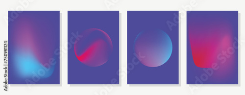Flat set of gradient posters. Circle shape with gradient overflows. Blue background. Suitable for card, banner design, cover, screensaver, party invitation...