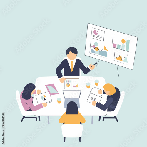 Flat Style Business People Meeting Presentation in Conference Room Illustration