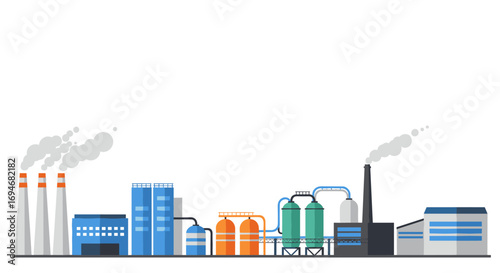 Flat style industrial factory skyline with smoke stacks and buildings
