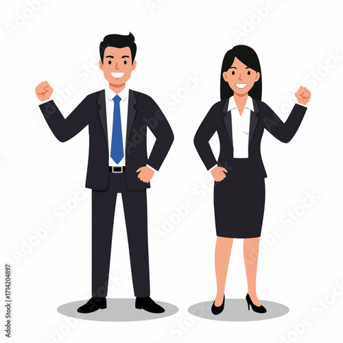 Flat Style Successful Businessman and Businesswoman Standing with Confident Pose Illustration