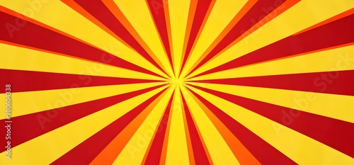 Flat sunburst background with yellow and red rays,
