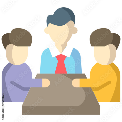 Flat Training Icon with Group Meeting and Corporate Instruction