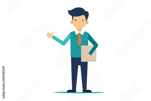 businessman, man, person, character, vector, illustration, office, business, suit, attaching, document, folder, gesticulate, presentation, explaining, pointing, employee, men at work, professional, job, career, corporate, leadership, management, success, motivation, achievement, goal, strategy, plan, development, growth