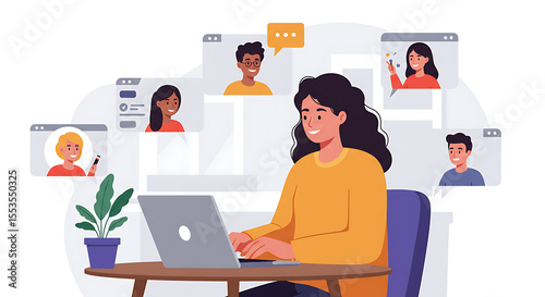 vector, illustration, team, collaboration, woman, teamwork, communication, home office, business, technology, digital, working, laptop, concept, icon, productivity, manager, leader, efficiency, workflow, beanbag, online, people, graphic, design, modern, freelancer, office, character, employee, electronic mail, clock, lifestyle, flexibility, future, corporate, job, occupation