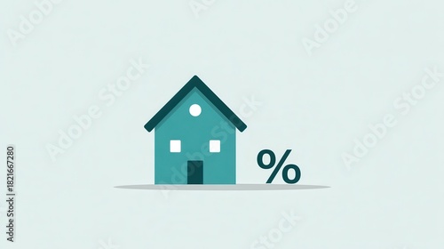 Flat vector illustration of a simple house design accompanied by a percentage symbol. Real estate investment concept.
