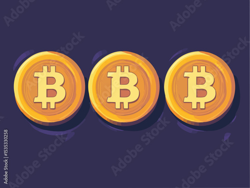 Flat Vector Illustration of Three Bitcoin Symbols in a Row on a Dark Purple Background
