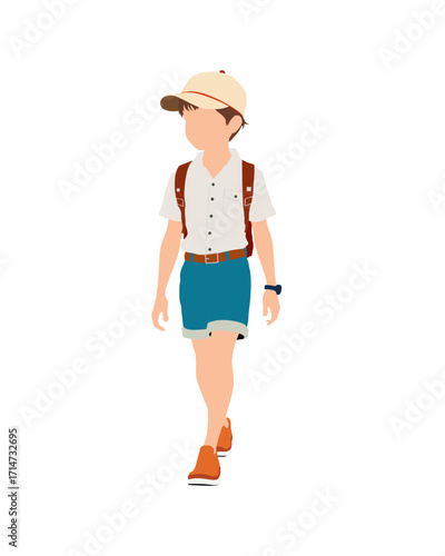 people, flat, vector, illustration, character, casual attire, man, boy, children, suit, person, standing, vacation, holiday, trip, travel, traveler, holiday maker, tour tourism, picnic, beach, summer, spring, season, guy, man, male, scout, uniform, design, isolated, fashion, model, lifestyle, outfit, style, hat, background, pose, posing, artwork, young, animated, confident, concept, coloured, colourful, graphic, faceless
