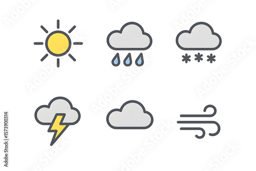 weather, icon, sun, cloud, rain, snow, wind, thunder, temperature, storm, forecast, moon, night, lightning, cloudy, sunny, fog, climate, vector, flat, symbol, cold, hot, droplet, ice, breeze, season, winter, summer, spring, autumn, meteorology, sky, dew, clear, umbrella, wave, flake, shine, mist, haze, report