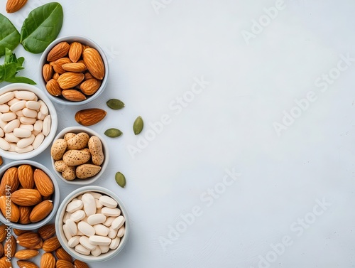 Flatlay of zinc tablets with nuts, seeds, and whole grains, highlighting immunityboosting nutrition