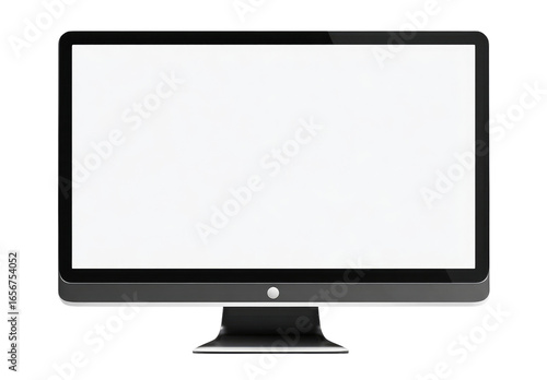 Flat-screen monitor with blank white display. Modern, sleek design. Dark gray bezel and stand. Isolated on white background