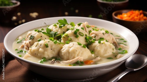 Flavorful chicken and dumplings with vegetables and herb